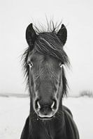 Dit indrukwekkende zwart-wit portret van een paard legt de nobele gratie en krachtige aanwezigheid van het dier perfect vast. De gedetailleerde weergave van de glanzende vacht en expressieve ogen geven de foto een tijdloze schoonheid. Ideaal voor kunstliefhebbers en paardenliefhebbers die een elegant tintje aan hun huis willen geven.