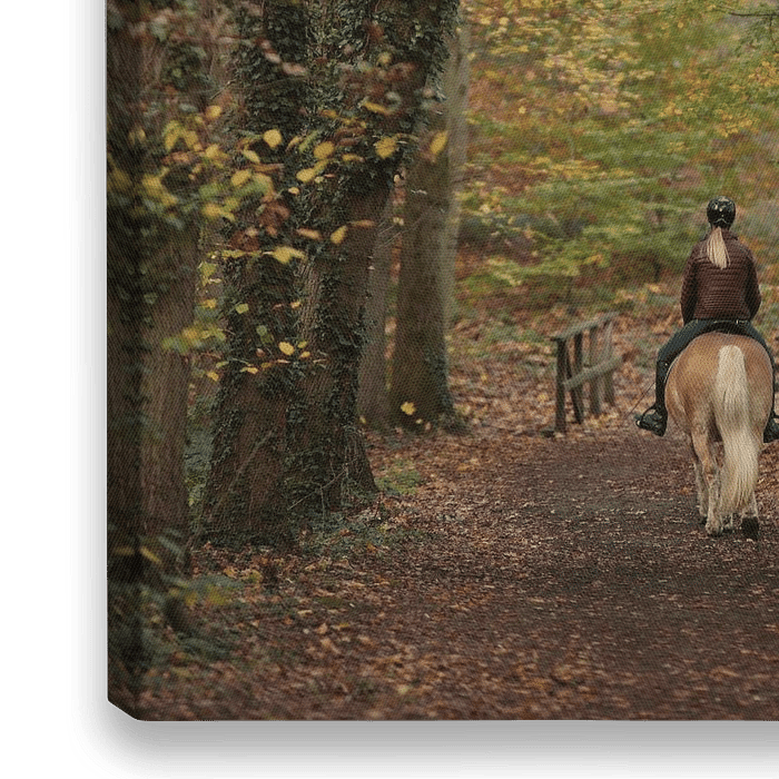 Wat een heerlijke ontspanning. Door het mooi gekleurde herfstbos een ritje op je paard. Beide blonde staarten bewogen golvend op het ritme van de stap, van het paard. Genieten !! voor de amazone, het paard en de fotograaf !!!