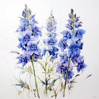 Prachtige, stijlvolle aquarel van bloesem in paarse waterverf tinten.