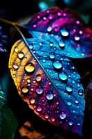 paars geel gloeiend blad met waterdruppels
