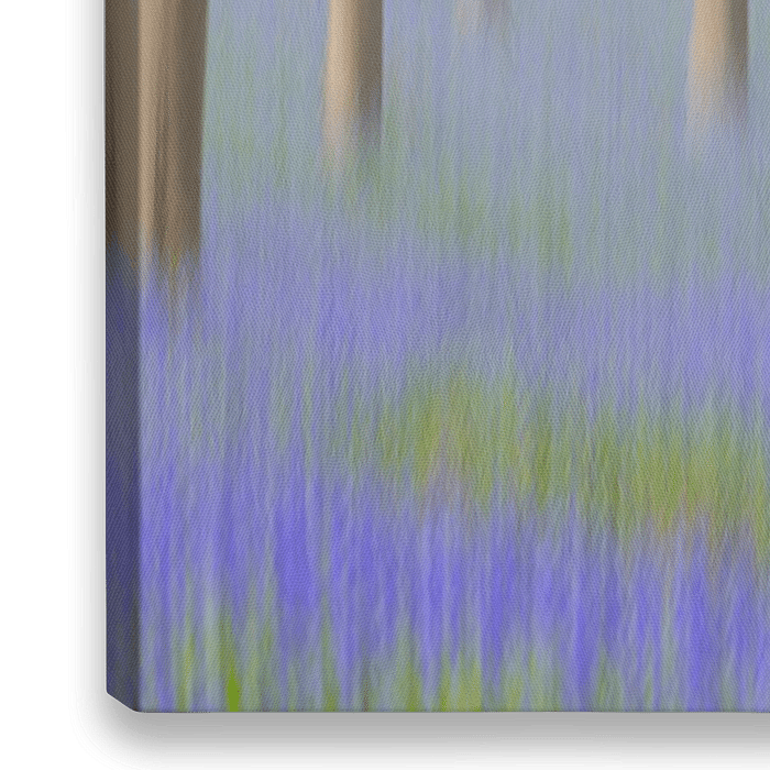 Een dromerige sfeer hangt over het Hallerbos, waar zacht licht en een subtiel waaseffect het landschap omhullen. De blauwe bloementapijten lijken te zweven tussen de bomen en geven het bos een sprookjesachtige rust en diepte.