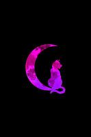 prachtig kunstwerk van een maansikkel met een kat erop in surrealistische roze en paarse kleuren. een geweldig ontwerp voor fans van heksen en halloween.