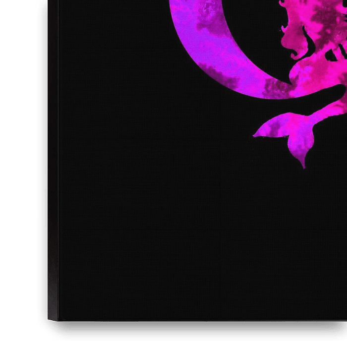 prachtig kunstwerk van een halve maan met een zeemeermin zittend op de rand in surrealistische roze en paarse kleuren.