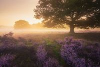 Het paarse heideseizoen in Nederland tijdens Augustus.