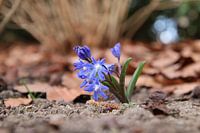 Mooie closeup van een opkomende paarse hyacint in het vroege voorjaar.