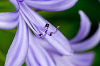 Het blijft een fascinerend schouwspel en dankbaar foto onderwerp: een bloem in closeup. De schitterende glans van de bloemblaadjes, de feilloze drang naar de zon, de fiere meeldraden en het kostbare stuifmeel. De zachtpaarse kleur contrasteert mooi met het frisse groen.
