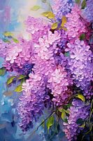 Een kleurrijk digitaal schilderij van Paarse Sering. Het werk geeft een dromerige en kleurrijke uitstraling aan uw interieur!