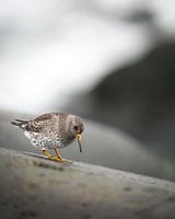 Op de Pier van IJmuiden heb je soms het geluk dat je een Paarse Strandloper tegenkomt op de stenen. Deze mooie steltloper is niet een veelvoorkomende vogel in Nederland.