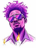 Een gestileerde abstracte illustratie van een man met een vizier, met een kenmerkend paars en roze kleurenschema.