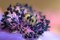 Net vuurpijltjes, de meeldraden van deze paarse anemoon. Ze schieten de lucht in zodra de bloem helemaal open is, een kleurenpracht om te bekijken, zeker met een macrolens. Dankbare bloemen in de tuin, vaas en om te fotograferen!