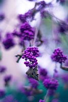Prachtige paarse besjes in de tuin. Macrofoto met krachtige kleuren gemaakt in de lente.