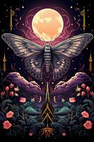 Paarse hemelvlinder vlinder onder de volle maan