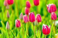Paarse tulpen in een veld in bloei tijdens de lente. Foto van dichtbij.
