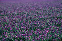 Een bollenveld met paarse tulpen