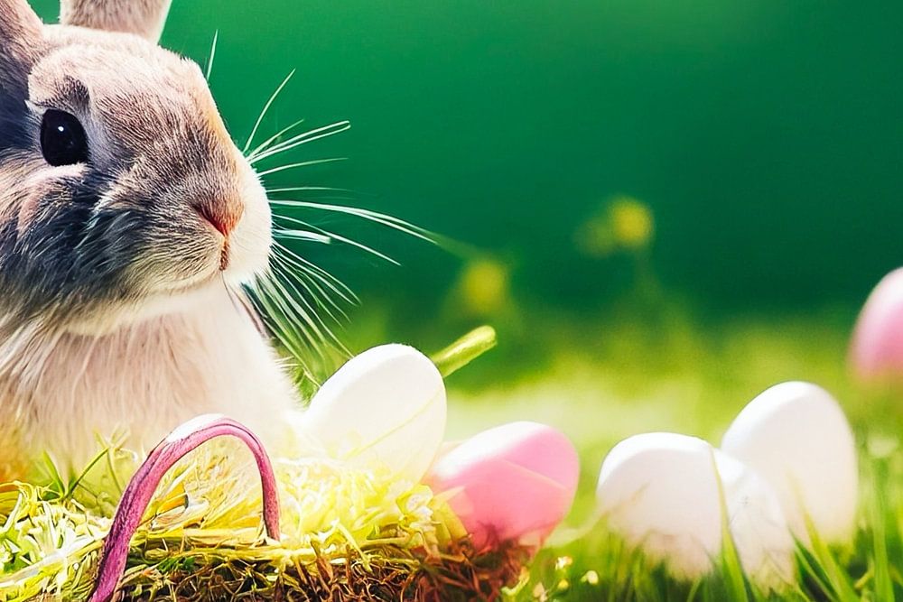 Paashaas met eieren en mand, kunstillustratie
