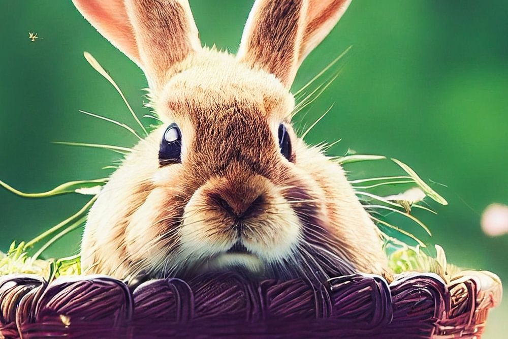 Paashaas met eieren en mand, kunstillustratie