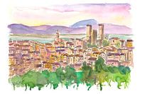 Pacentro Abruzzo uitzicht met middeleeuwse drie torens