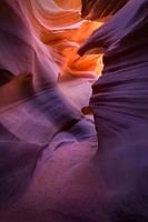 Een smal wandelpad door Antelope Canyon in Page / Arizona. Door de lichtinval krijgt deze slot canyon magische kleuren