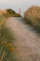 Pad door de duinen naar de Vuurtoren op Ameland, waddeneiland van Nederland.