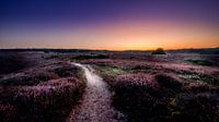 Voetpad door de heidevelden in de vroege ochtend op de Posbank bij Arnhem