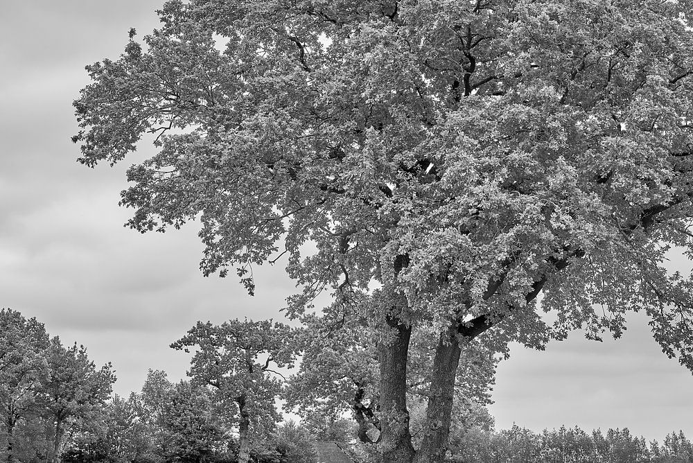 Fiets en wandelpad door de weilanden, langs het Veluwemeer bij Nunspeet. Bewust gekozen voor een monochrome, zwart/wit foto. Dat geeft hier de sfeer beter weer dan een kleurenfoto. Zie je trouwens de paarden verderop in het weiland?