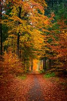 Pad met beuken aan weerszijden in een bos tijdens een mooie herfstdag in het Veluwse natuurgebied De Haelberg bij Epe.
