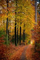 Pad met beuken aan weerszijden in een bos tijdens een mooie herfstdag in het Veluwse natuurgebied De Haelberg bij Epe.