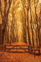 Pad door een herfstbeukenbos in het natuurgebied Veluwezoom op de Veluwe in Gelderland.