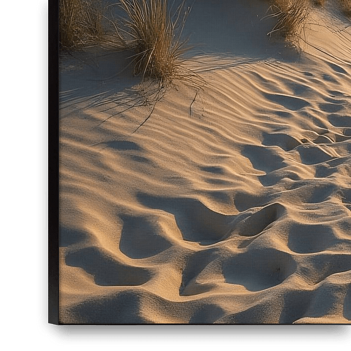 Zacht gebogen zandduinen omlijsten een smal pad dat direct naar zee leidt. De warme zonnestralen baden het landschap in een gouden licht, terwijl een zacht briesje het duingras laat dansen. In de verte glinstert het kalme water in het zachte licht van de ondergaande zon. Een plek van vrede en verlangen - perfect om je gedachten te laten…