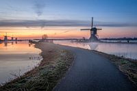 Pad tussen de windmolens op de Kinderdijk.