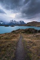 Een wandelpad in het Torres del Paine Natuurgebied in Zuid Chili. Genomen op een bewolkte en winderige namiddag.