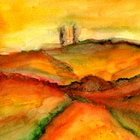 Het schilderen, Zacht, Licht, Eigentijds, Modern, Decoratief, Abstract, Impressie, Rust, Poster, Impressionisme, Natuur, Zacht, Warm, Stilte, Kleurrijk, Vrolijk, Manier, Bergen, Weide, Natuur, Lucht, Herfst, Waterverf, Figuratief, Landschap, Herfst