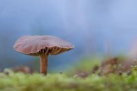 De foto is genomen in Warmond, Zuid Holland. Op een prachtige herfstdag tijdens een boswandeling stond deze paddenstoel mooi geisoleerd in het mos.