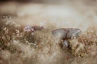 Op een prachtige ochtend gefotografeerd, een paddenstoel met erg mooi licht schijnend op de waterdruppeltjes die op het mooie gras zitten.
