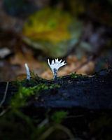 Dit is het mooie en zeer kleine geweizwammetje die je met name in de herfst kan vinden op dode boomstronken en stammen. Een zeer fotogenieke paddenstoel.