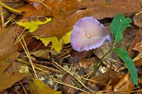 Paars gekleurde paddenstoel. een amethistzwam. Gevonden tijdens een morgen fotograferen in een bos.