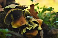 Een echte herfst plaatje is dit! De paddenstoelen op deze boomstam hebben allerlei soorten vormen. Foto genomen in Boswachterij Dorst, Noord-Brabant, Nederland.