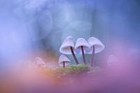 Bij deze foto heb ik mijn creativiteit de vrije loop gelaten. Ik zag dit groepje Mycena's op een omgevallen boomstronk staan en met wat hulpmiddelen kwam het to deze anders dan andere foto...