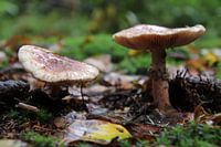 Dichtbij opname van paddenstoelen in het bos met een wazige achtergrond