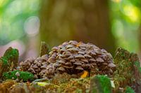 Paddenstoelen op een boomstam in een loofbos in de herfst