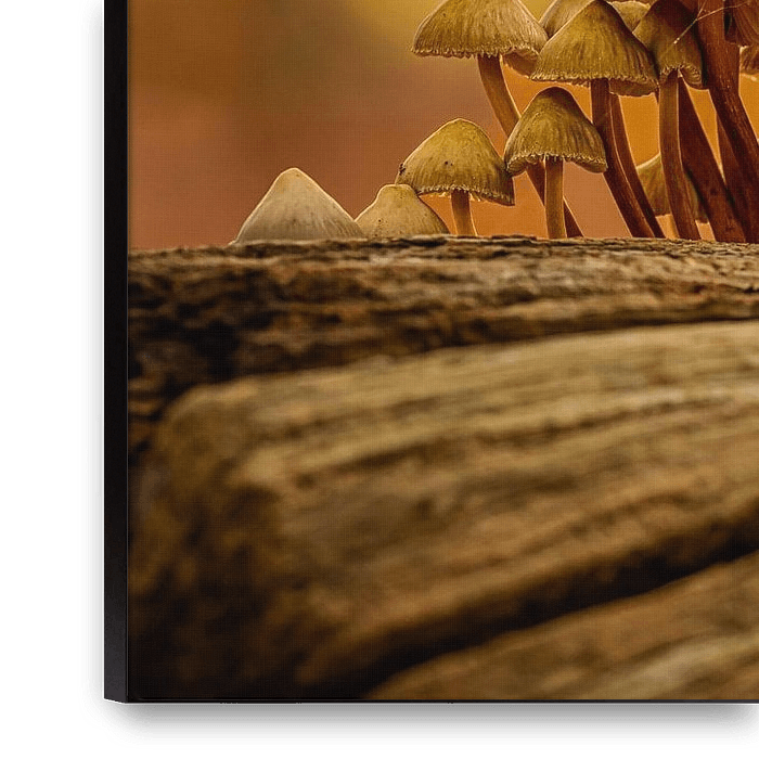 Koop de foto Paddenstoelen op een boomstronk van Leon Okkenburg op canvas, aluminium dibond, (ingelijste) fotoprint, behang en ArtFrame, op maat geprint in Fine-Art kwaliteit.