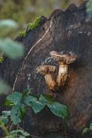 Koop dit landschapskunstwerk Paddenstoelen schieten uit stam van Eline Huizenga op canvas, aluminium dibond, (ingelijste) fotoprint, behang en ArtFrame, op maat geprint in Fine-Art kwaliteit.