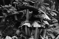 Het is herfst en de bladeren vallen van de bomen. Tussen die bladeren zie je de paddenstoelen uit de grond schieten. In alle soorten en maten. Voor dit 'dorpje' hoefde ik niet ver van huis, ze bevonden zich in mijn tuin.