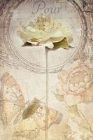 Witte pioen, romantisch en liefdevol ontworpen met nostalgische achtergrond.
