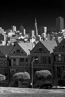 De Painted Ladies met op de achtergrond de skyline van San Francisco met daarin de herkenbare TransAmerica Building.