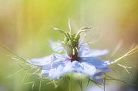 Een schilderachtige opname van een Juffertje-in-het-groen gevangen in het zonlicht.