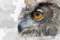 Close-up van een uil met mooi oranje kleurig oog in digital art uitvoering.