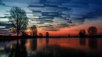Zonsopkomst bij het Genneperhuis, aan de Maas. Het was een koude maar zo goed als heldere zonsopkomst. Al voor de zon boven de horizon uitkwam werd de lucht voorzien van prachtige kleuren. Het schilderachtige effect van de wolken is ontstaan door het gebruik van een zeer lange sluitertijd. Door een sluitertijd van ruim acht minuten onstaan de strepen doordat de wolken zich blijven voortbewegen.