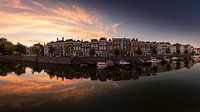 Op deze warme zomeravond worden de pakhuizen aan de Dam prachtig weerspiegelt in het Prins Hendrikdok te Middelburg.