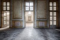 Licht inval in grote hal van verlaten, oude Italiaanse villa